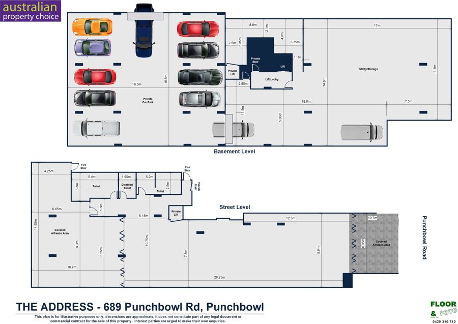 Approximately 1066sqm of floor space over 2 level, perfect for major restaurant or steak bar, with street and rear alfresco arears, private parking for up to 12 cars, storage and kitchen area located on the lower level with a private goods lift.
